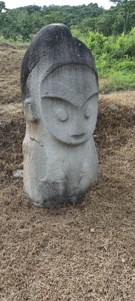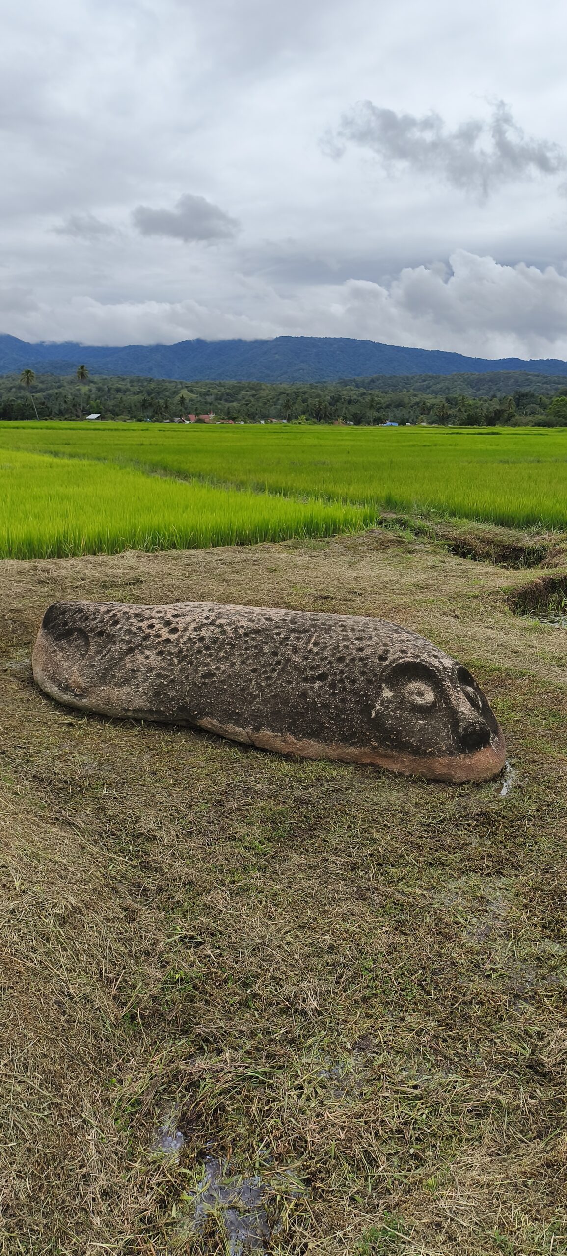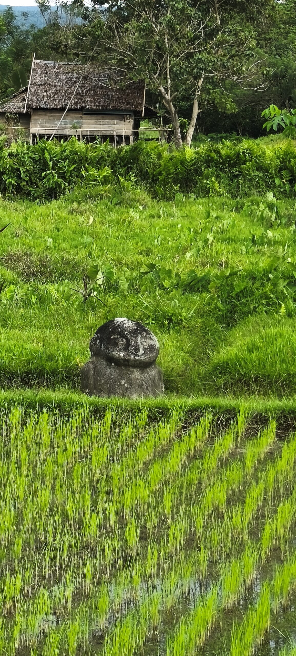 Sinon il faut traverser des rizières. Ces statues sont de toutes les tailles : de 50cm à 4m, un visage artistique typique, sur un rocher ou un menhir. C’est assez rare dans le monde.Dans d’autres vallées voisines, il y a des formes rondes sculptées en énorme récipient avec couvercle en pierre également.