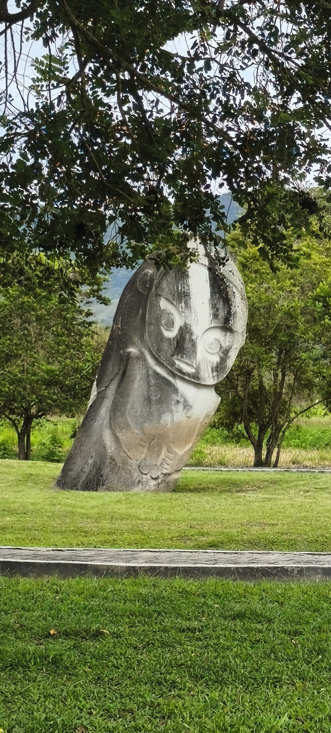 On va finir par la statue mégalithique de Palindo. Elle est très haute et elle penche.
