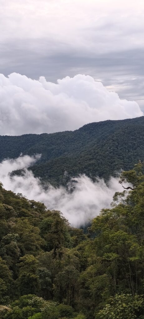 Nous n’avons pas prévu qu’il fasse aussi froid, à cause de l’altitude et de la pluie ? Nous sommes en tenue de touristes.