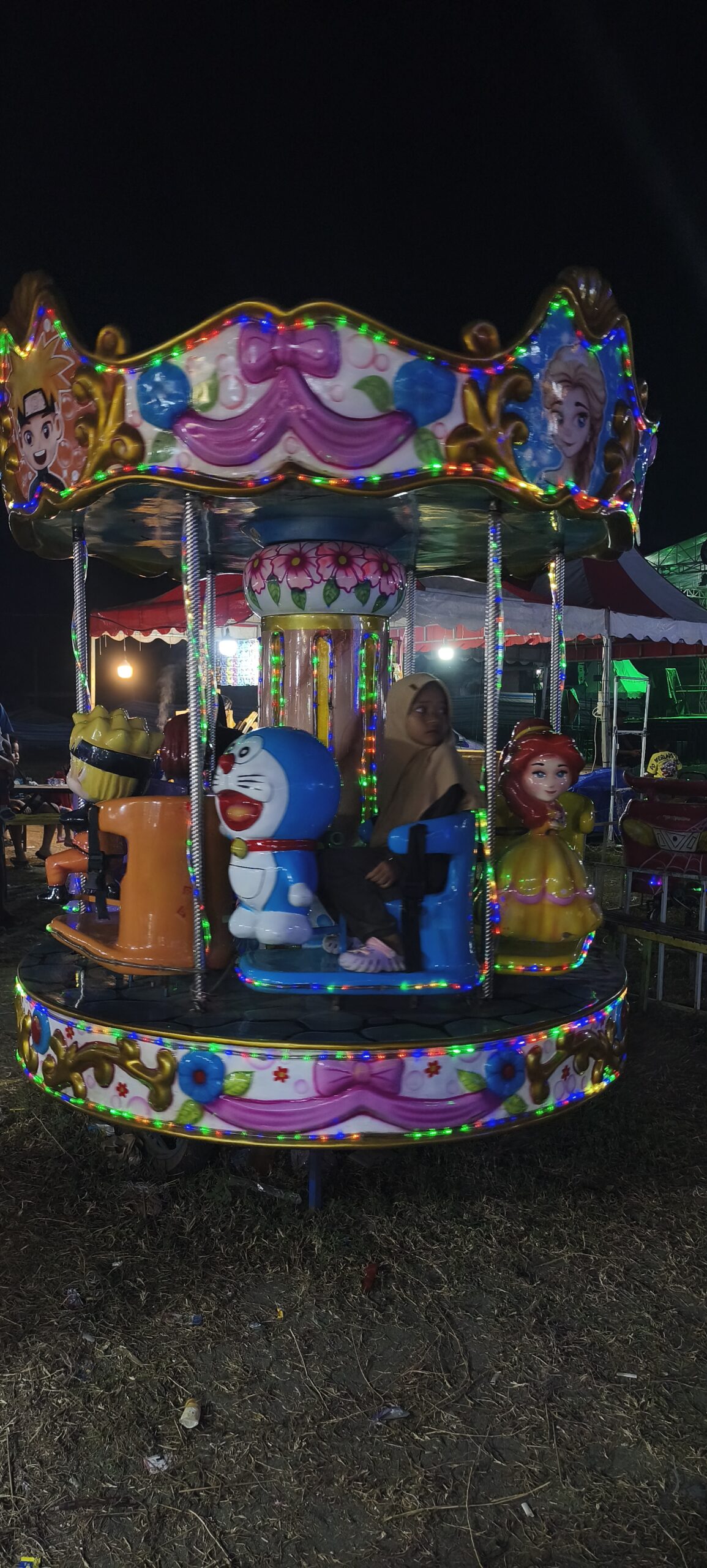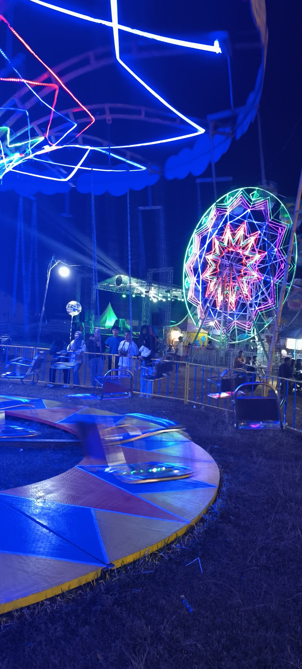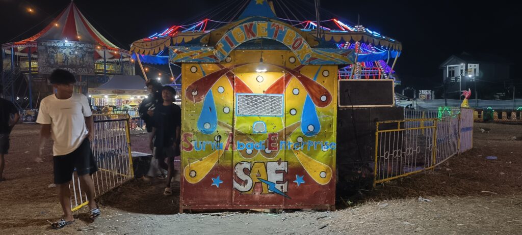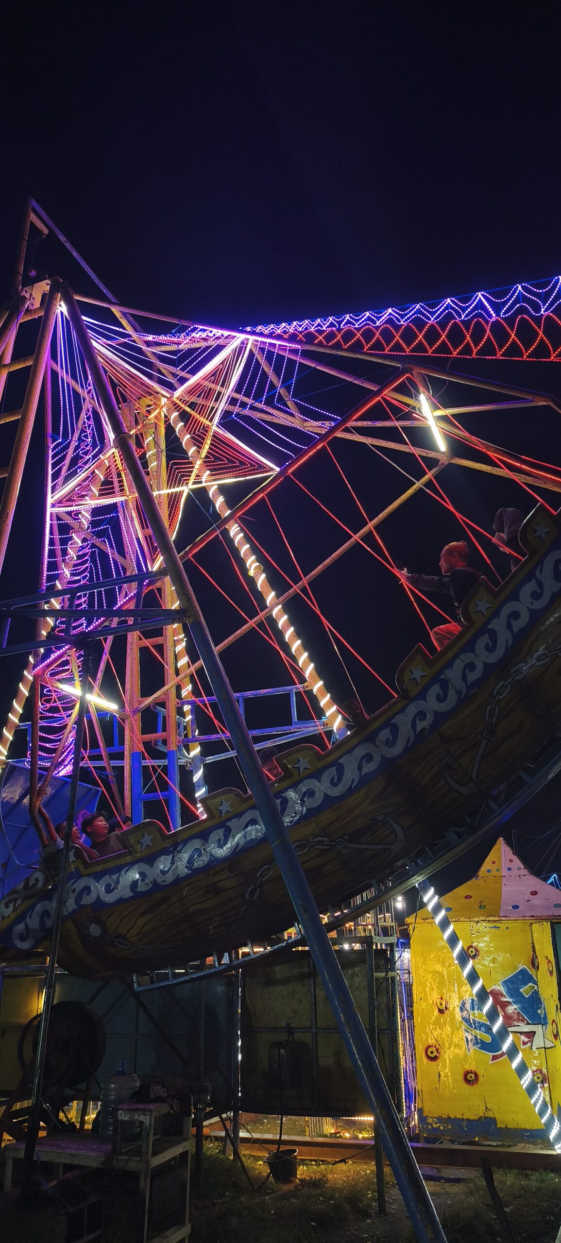 J’ai failli louper le petit parc d’attraction couleur locale, sauvé par les éclairages qui zebrent le ciel. Petits moyens mais c’est à voir. On aurait pu aussi y ouvrir un stand photos car on est très sollicités. Le photographe qui n’était pas motivé était finalement content de sa séance.
