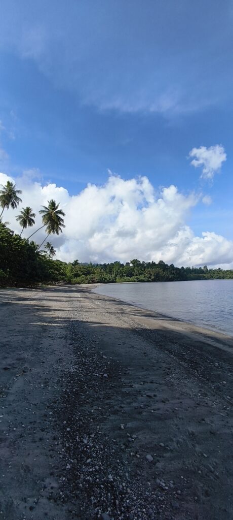 Il fait un temps magnifique et la mer est lisse. On longera l’île principale, il faudrait s’arrêter par ici pour aller voir cette zone d’îlots avec mer turquoise (type Raja Ampat).