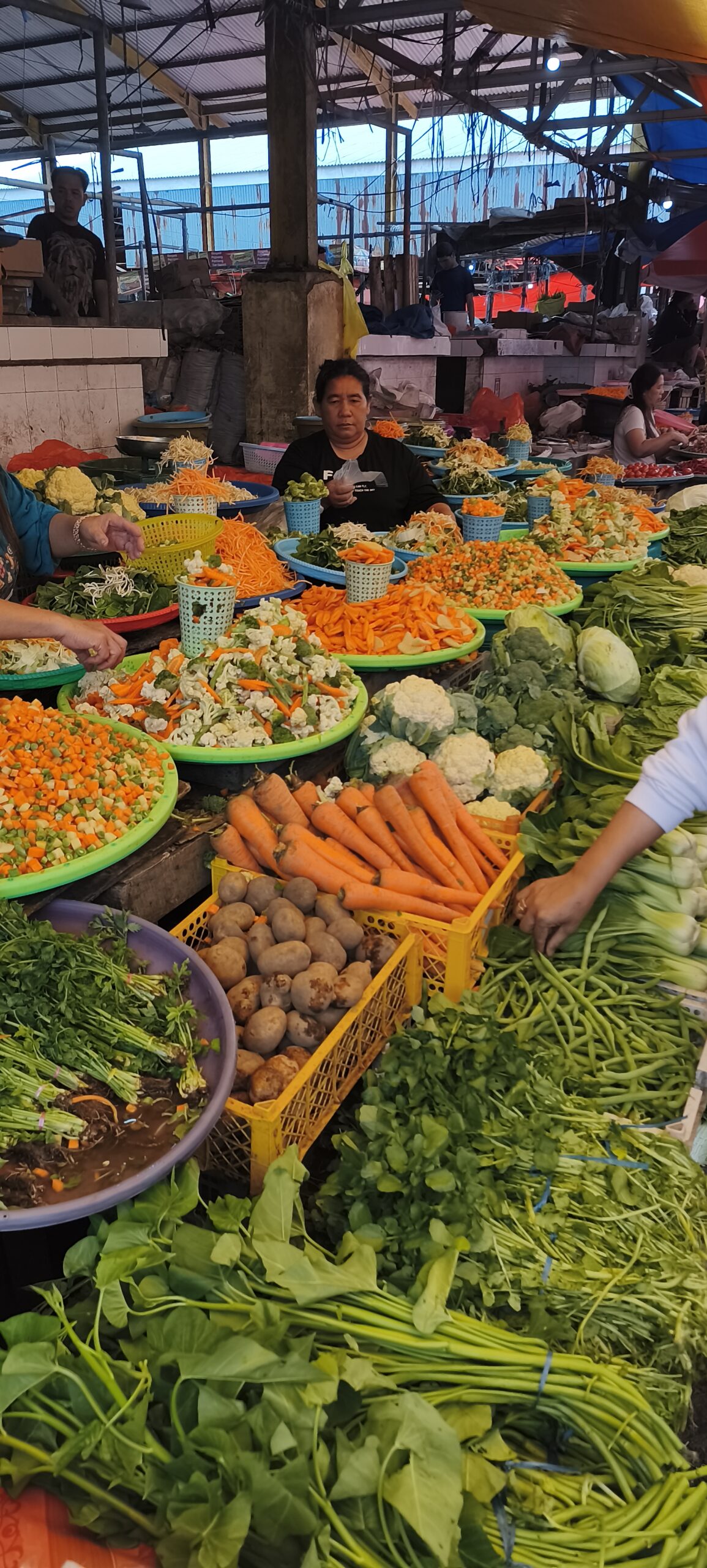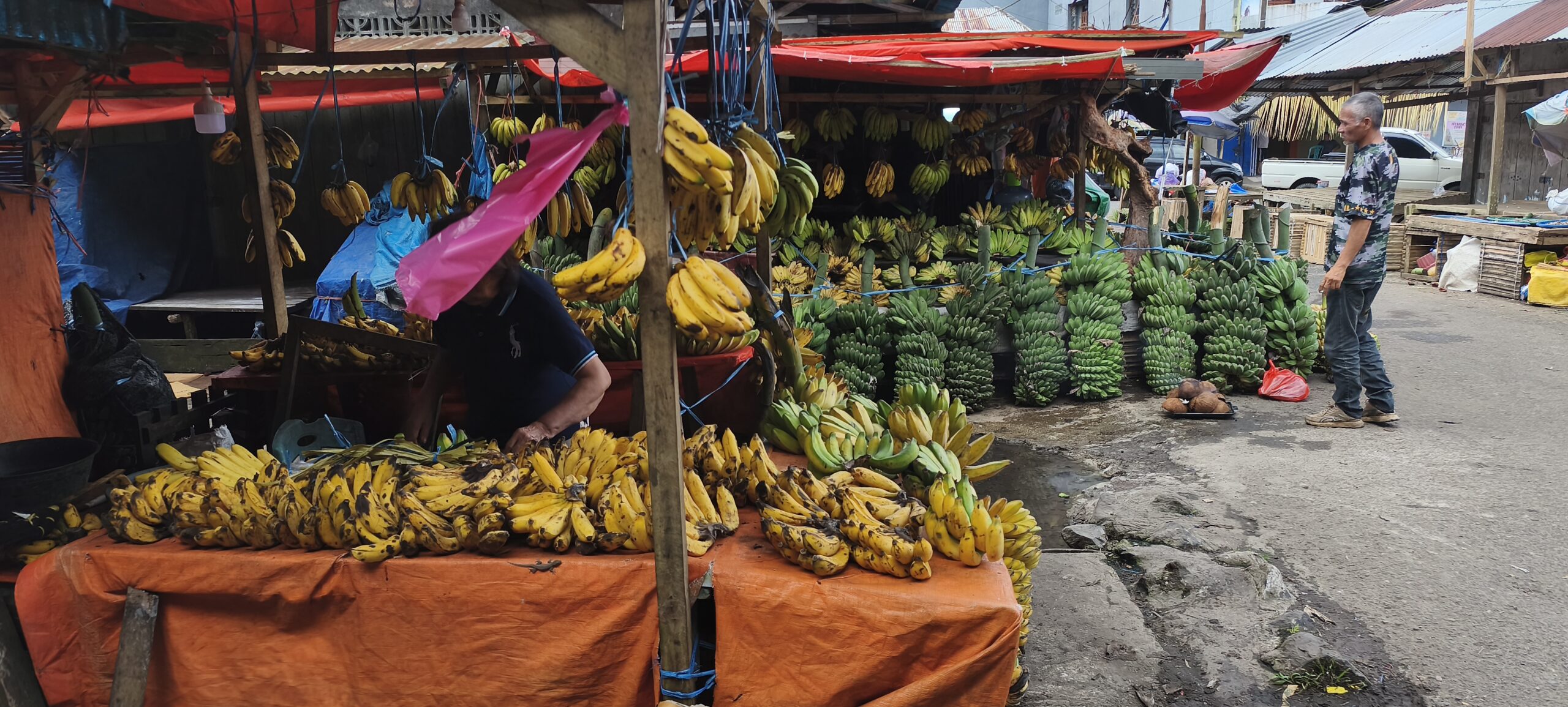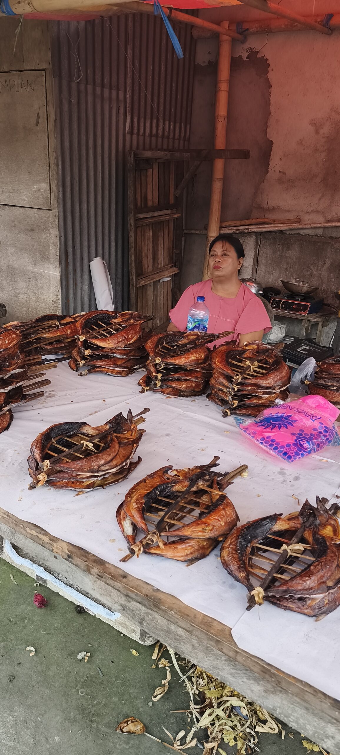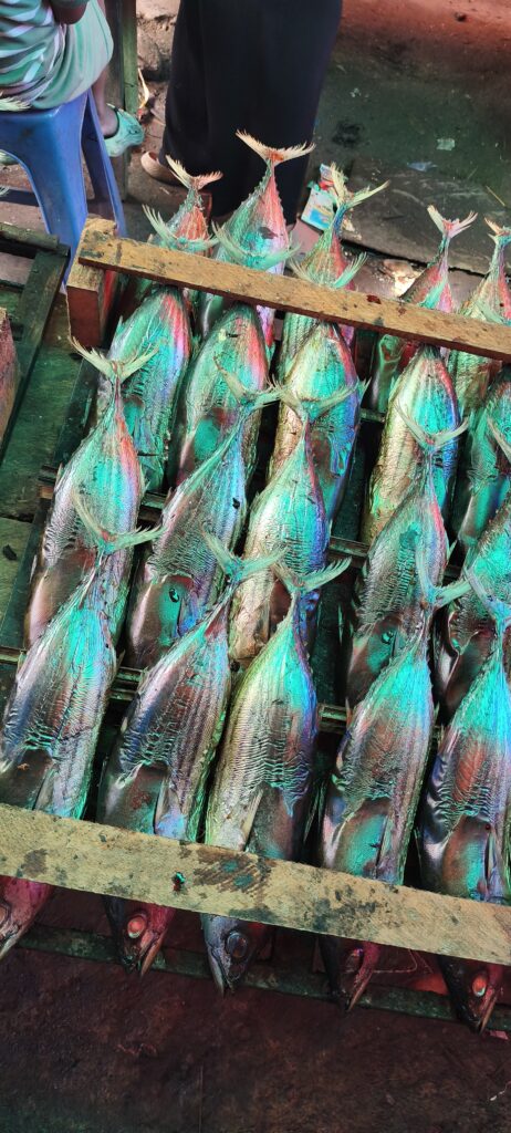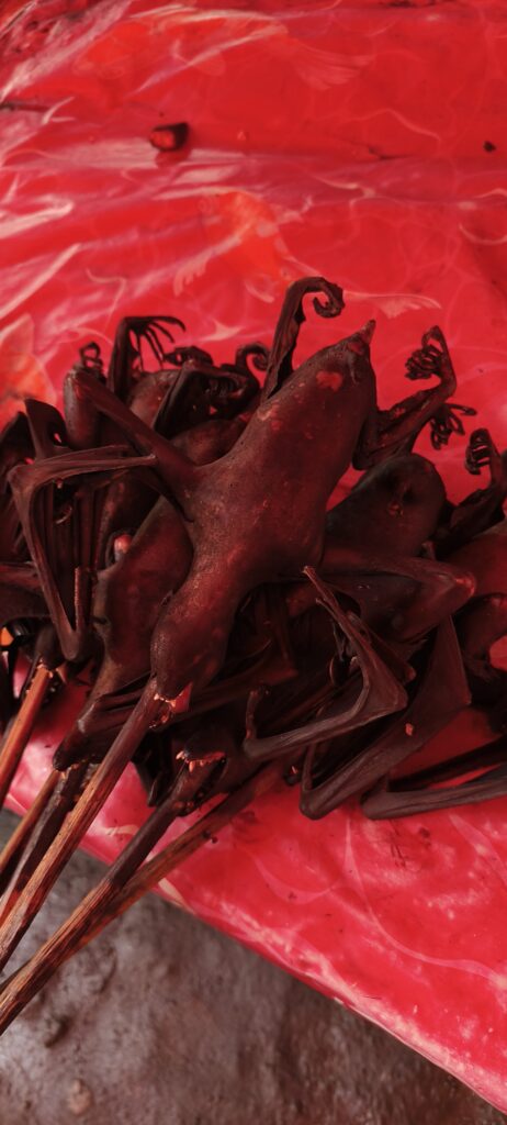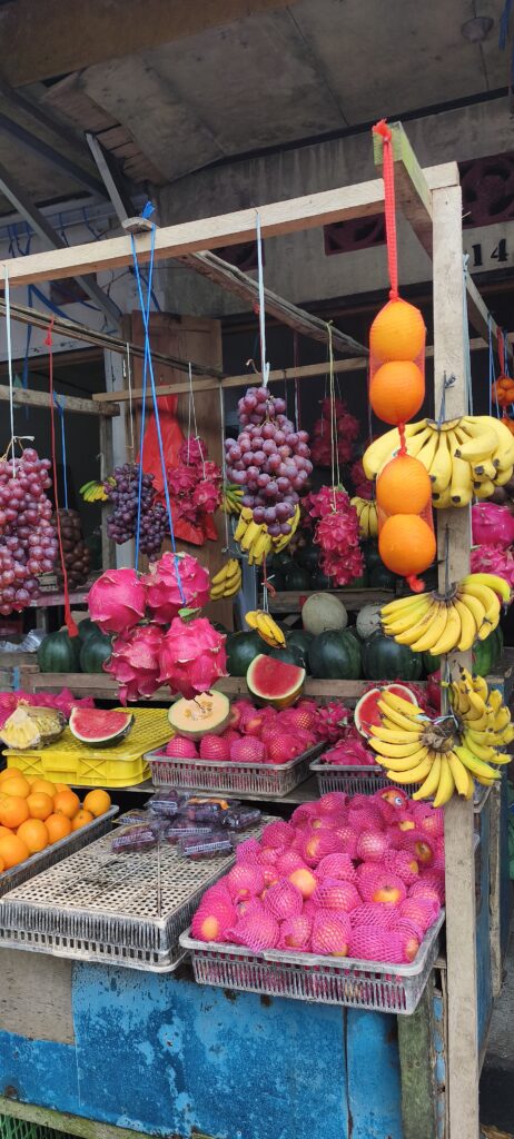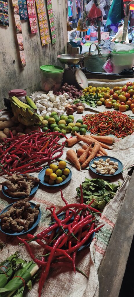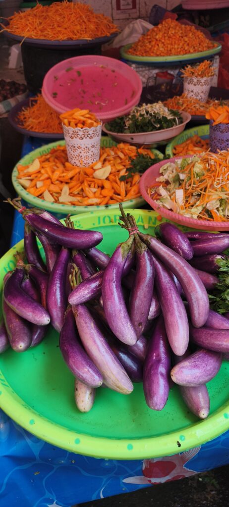Autre attraction ici : le marché central. Il est très important, à tel point que je n’ai pas vu de petits magasins d’alimentation en ville. L’ethnie du coin apprécie le cochon, le chien, la chauve-souris et le python que l’on doit pouvoir acheter. Le dimanche il n’y a rien que du porc. Sinon il y a une bonne proposition de fruits et légumes, un petit quartier friperie, etc.