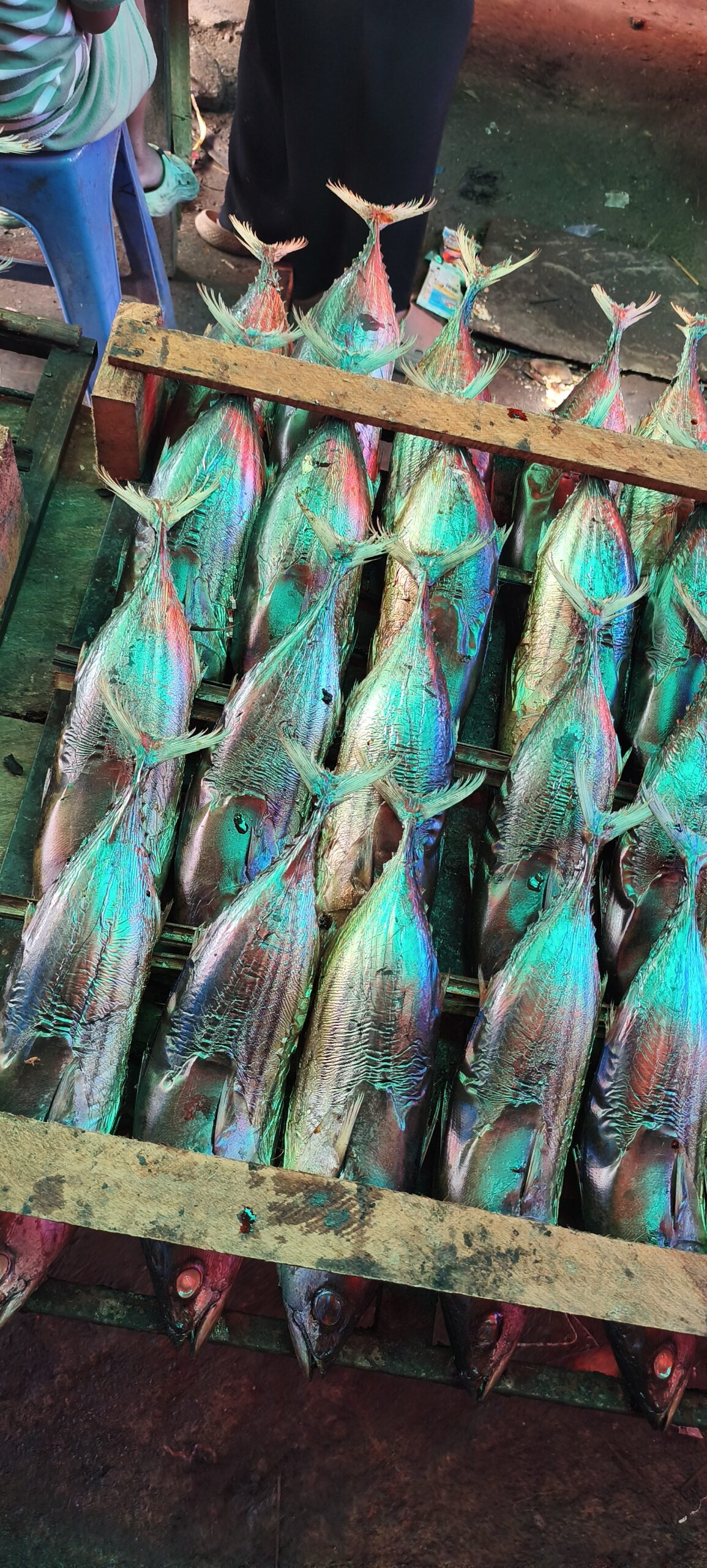Au bout de presque 2 mois, j’ai enfin une restauration réconfortante : il y a une spécialité dans une rue, des brochettes de porc. 1 euro pour 2 mini brochettes : un vrai luxe dans ce pays, mais ça a son succès.