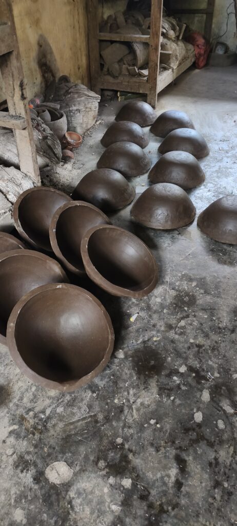 On m’a parlé d’un village de potiers, malgré la distance je vais y aller en scooter. A l’adresse indiquée, il n’y a pas la production attendue mais la propriétaire m’a bien expliqué sa situation. Aujourd’hui elle fait quelques rares objets traditionnels : fourneau et pot compatible, barbecue. Elle a un vrai marché de creusets pour les mines d’or de Manado. Elle a reçu des formations par l’aide au développement canadien pour faire de la petite céramique utilitaire comme chez nous mais elle n’a pas franchement trouvé les débouchés elle fait bien des salons pour Noël. Le voisin d’en face réalise d’énormes vases, peints avec décor de fleurs biens kitchs. Il y a bien plusieurs potiers qui travaillent sur des commandes.