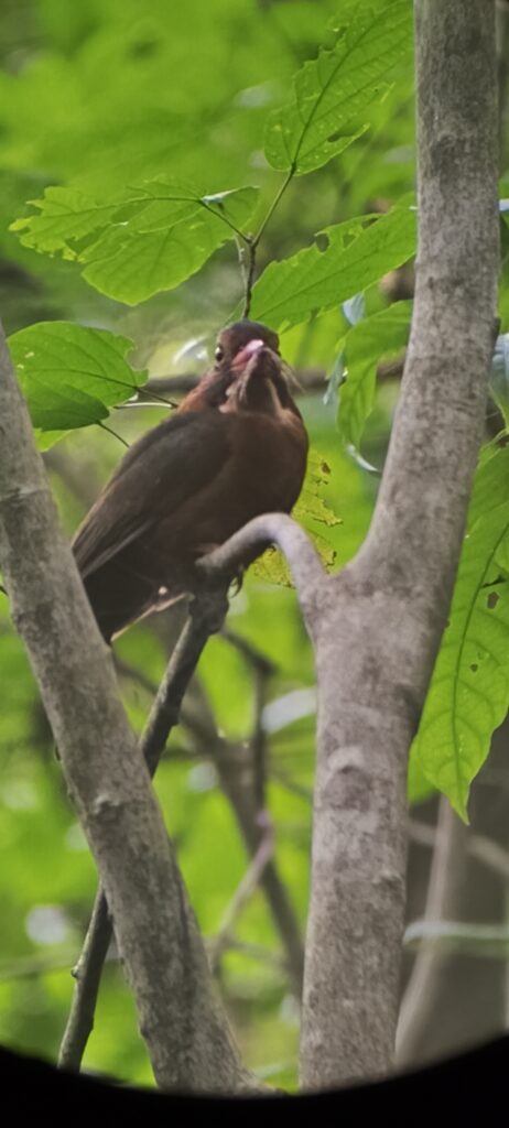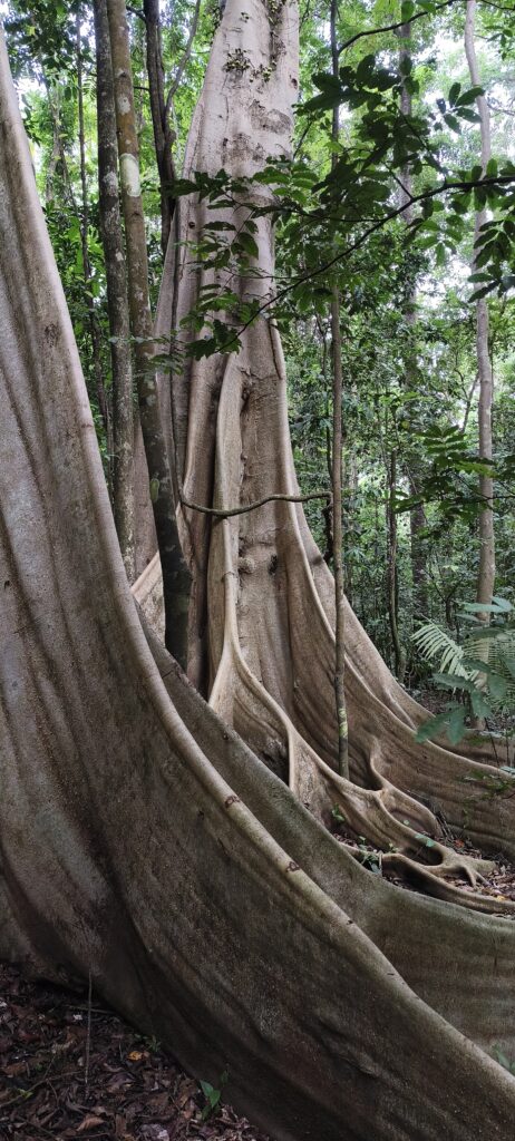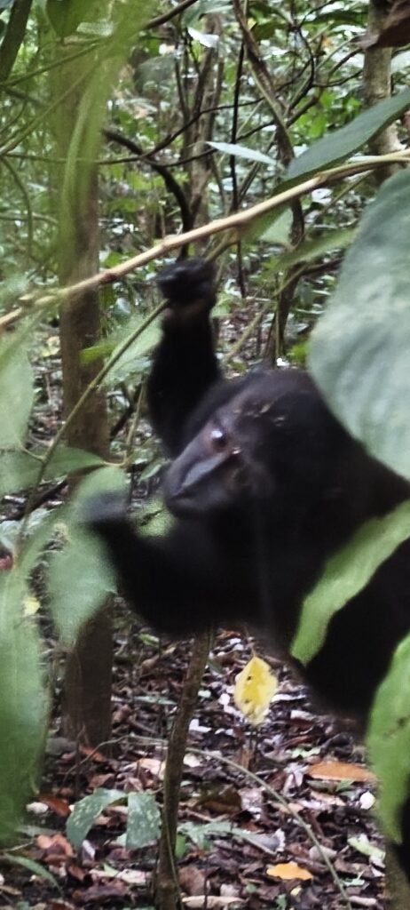 La visite de 7h du matin est bien plus efficace. Un bon groupe de macaques noirs à crête, toujours amusant de voir les jeunes faire le cirque, sautant d’arbres en arbres, de lianes en lianes. On a bien vu quelques chutes.