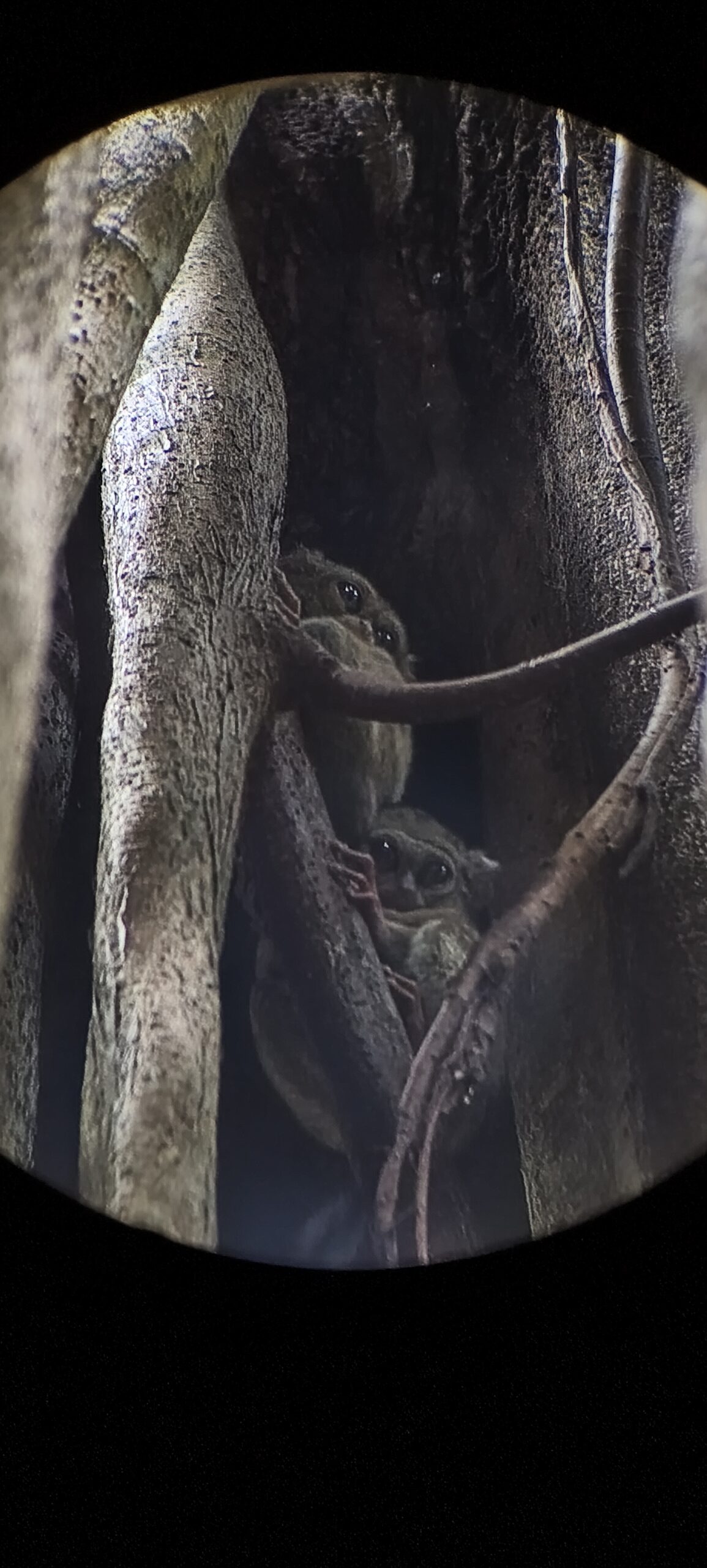 Les guides ont le mérite de trouver des tarsiers en mode repos discret dans les interstices hauts des arbres. Ces plus petits primates du monde, gros comme la main, de très gros yeux globuleu, air effrayant/effrayé. Actifs la nuit, ils ont un cri proche de celui de l’écureuil. On les observe à la lunette, sur laquelle un accessoire permet de fixer un smartphone, on a tout sur l’écran de façon très satisfaisante, idéal pour la photo et la vidéo. Découverte.
