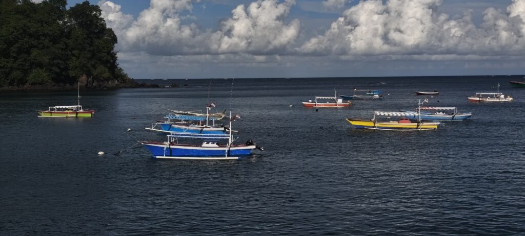 Je pense rencontrer les deux Français de l’hôtel de Tomohon. En entrant dans un hôtel, je demande 2 français âgés, et l’on me présente une jeune française. Toute dispo même si elle de reposait dans sa chambre, on parle voyage, et elle me fournit le bon plan pour les 3 jours suivants alors que j’étais un peu à vide. Discussion un soir au resto de plage, avec un jeune couple qui est en tour du Monde. Trop sympa. Mes jeunes retraités continueront en scooter, à suivre la côte par le nord. Mon voisin à l’hôtel est un jeune deja croisé sur les îles Togeannes au moment de prendre le ferry…