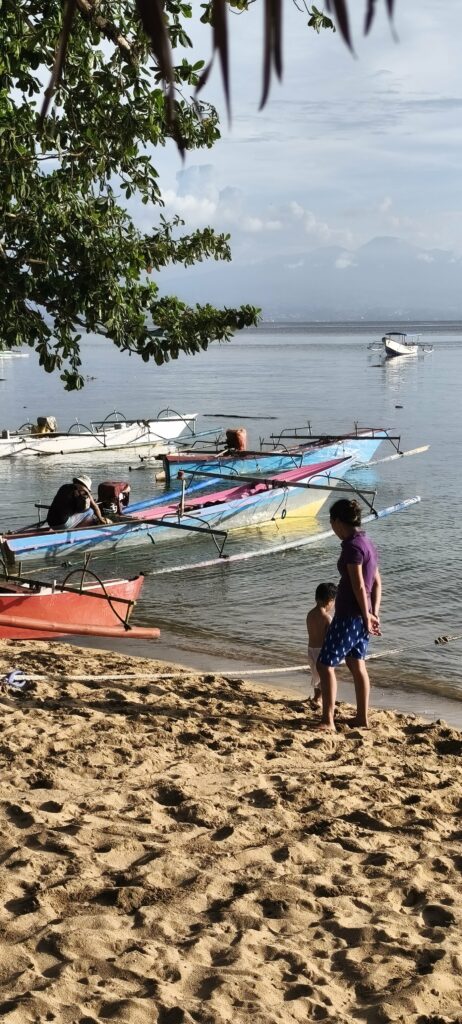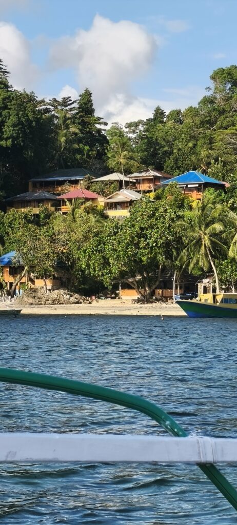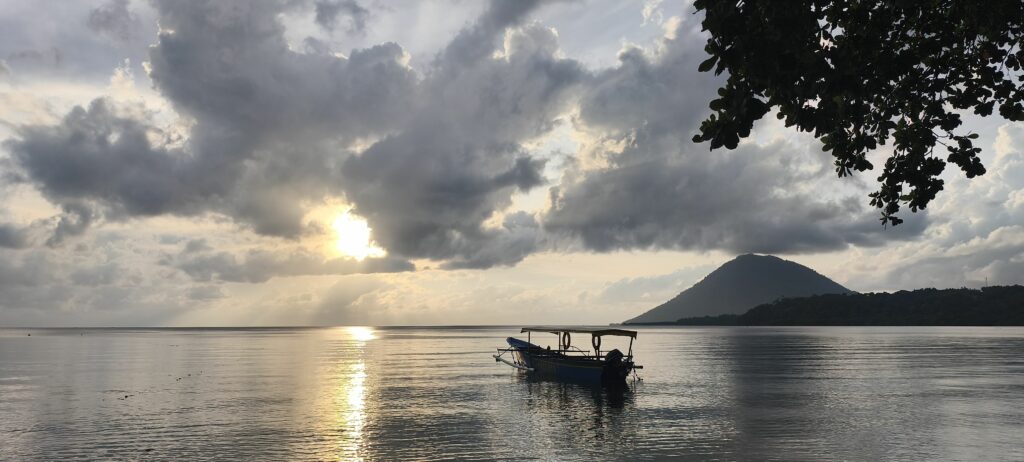 Bunaken est une île proche de la grande ville de Manado. Elle est très célèbre pour la plongée. Je vais à un hôtel recommandé par le précédent. Le transfert est inclus dans la précédente prestation et c’est vrai que c’est très pratique car pour les touristes, c’est le principal soucis, surtout depuis les zones reculées. Le plan est arrangé pour me déposer dans un petit port d’où un petit bateau me portera à l’hôtel, tout à très bien roulé.