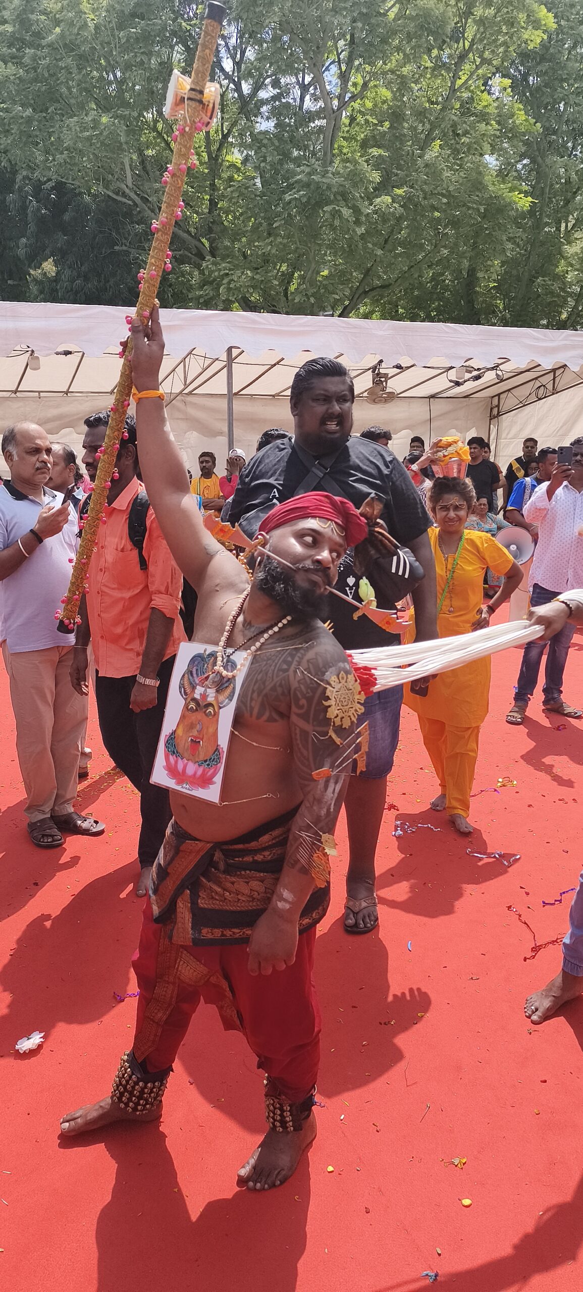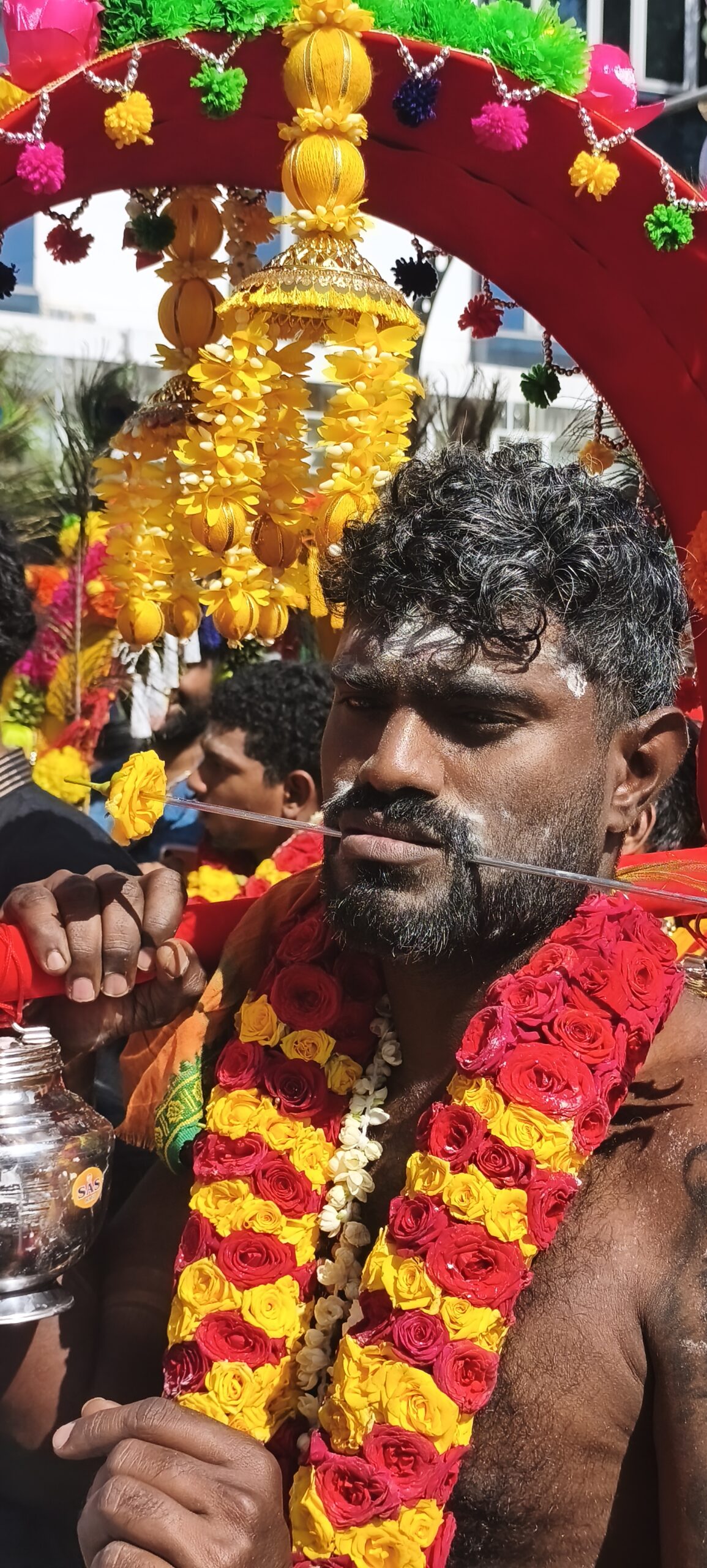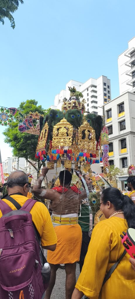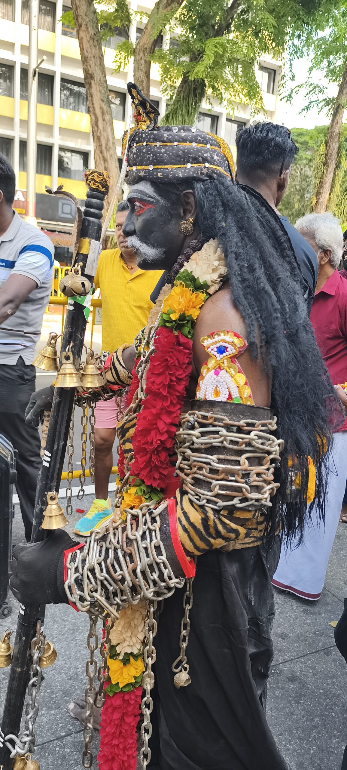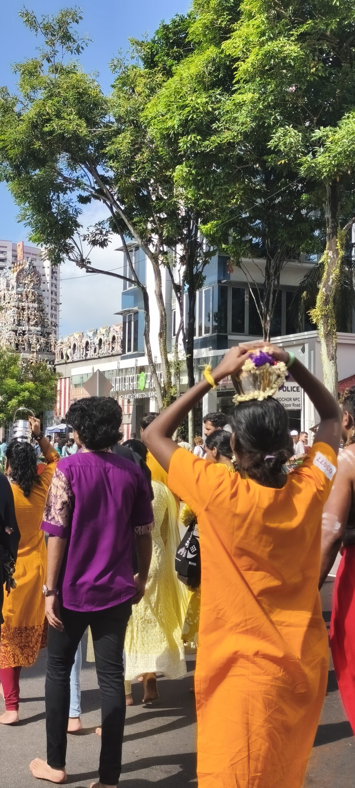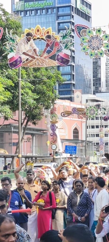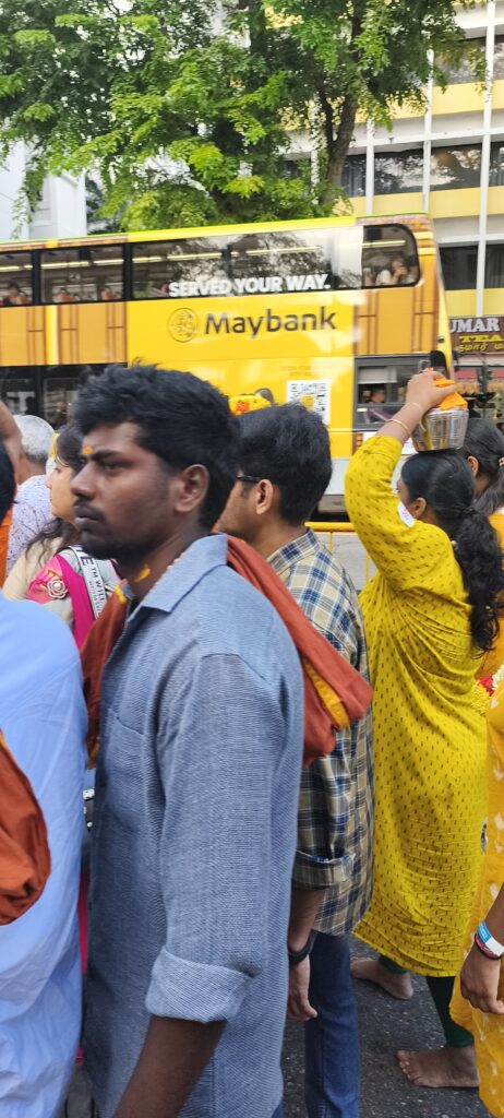 En pleine forme je continue ma randonnée en ville et à pied, plus vers le centre. Une grosse agitation au bord d’une grande rue m’attire, il y a une procession indienne. En fait elle est interminable, c’est Thaipusam, une des plus importantes fêtes religieuses. Des musiciens, des personnages transpercés, des porteuses de lait marcheront sur 4km. Haut en couleur et très bien organisé, c’est le grand bain pour moi. Photos photos. Occasion de manger des puris, énormes beignets creux, bien gonflés avec une sauce, boire un très bon lassi, lait un peu fermenté au concombre et coriandre…