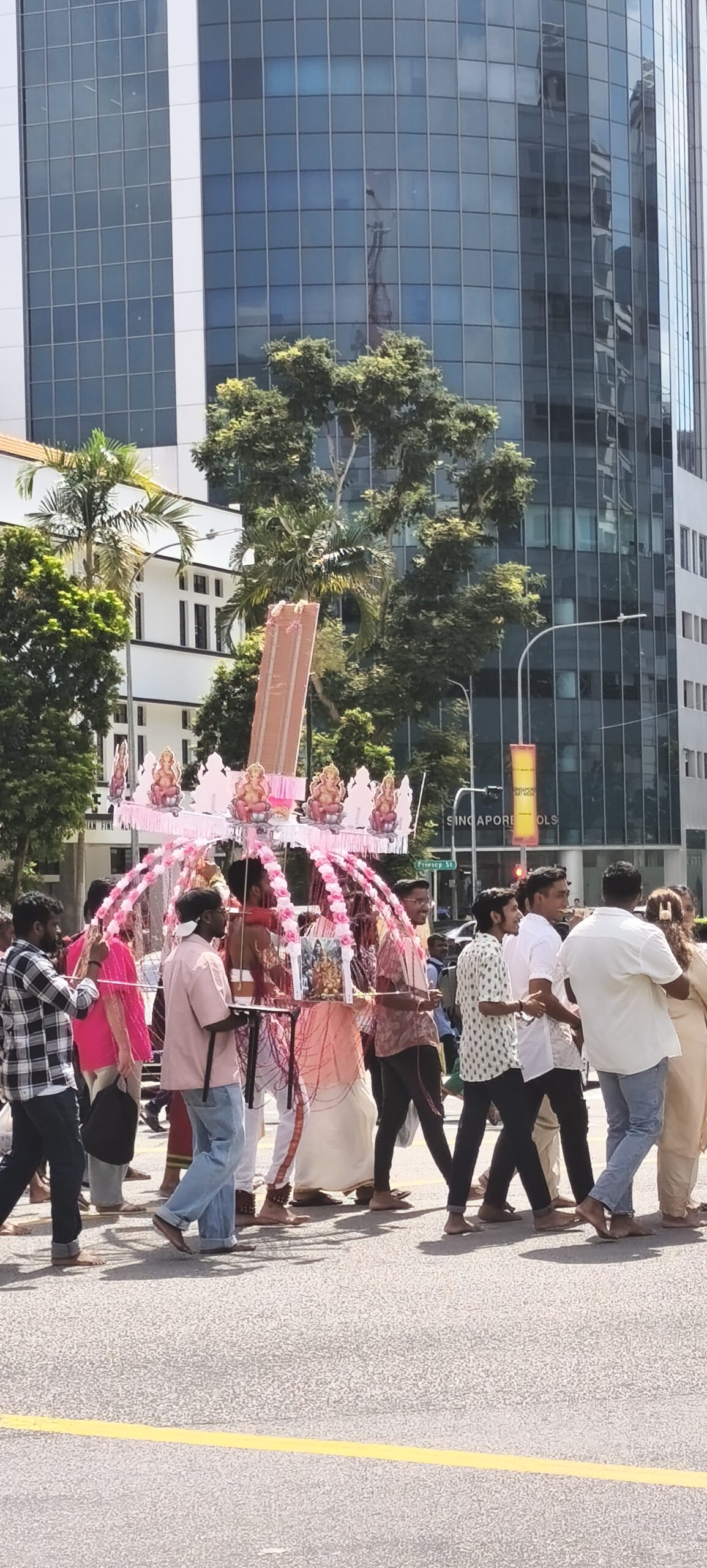 Je me retrouve devant l’église principale de la ville, et la chorale répète. Beau niveau, et répertoire pas très européen, mais je n’entend que le piano. Gonflé à bloc, je fais la remarque à une assistante. Je sur enchéris un moment après en lui expliquant que dans ma ville, se réunissent des milliers de choristes pour un festival, et que j’ai travaillé avec eux. Apparemment il était délicat de faire passer le message, mais ça a fonctionné. Yes. Ils se préparent pour un mariage le dimanche suivant, ça doit être pour le gratin. On est en plein centre ville, sur les Champs Élisée de Singapour.