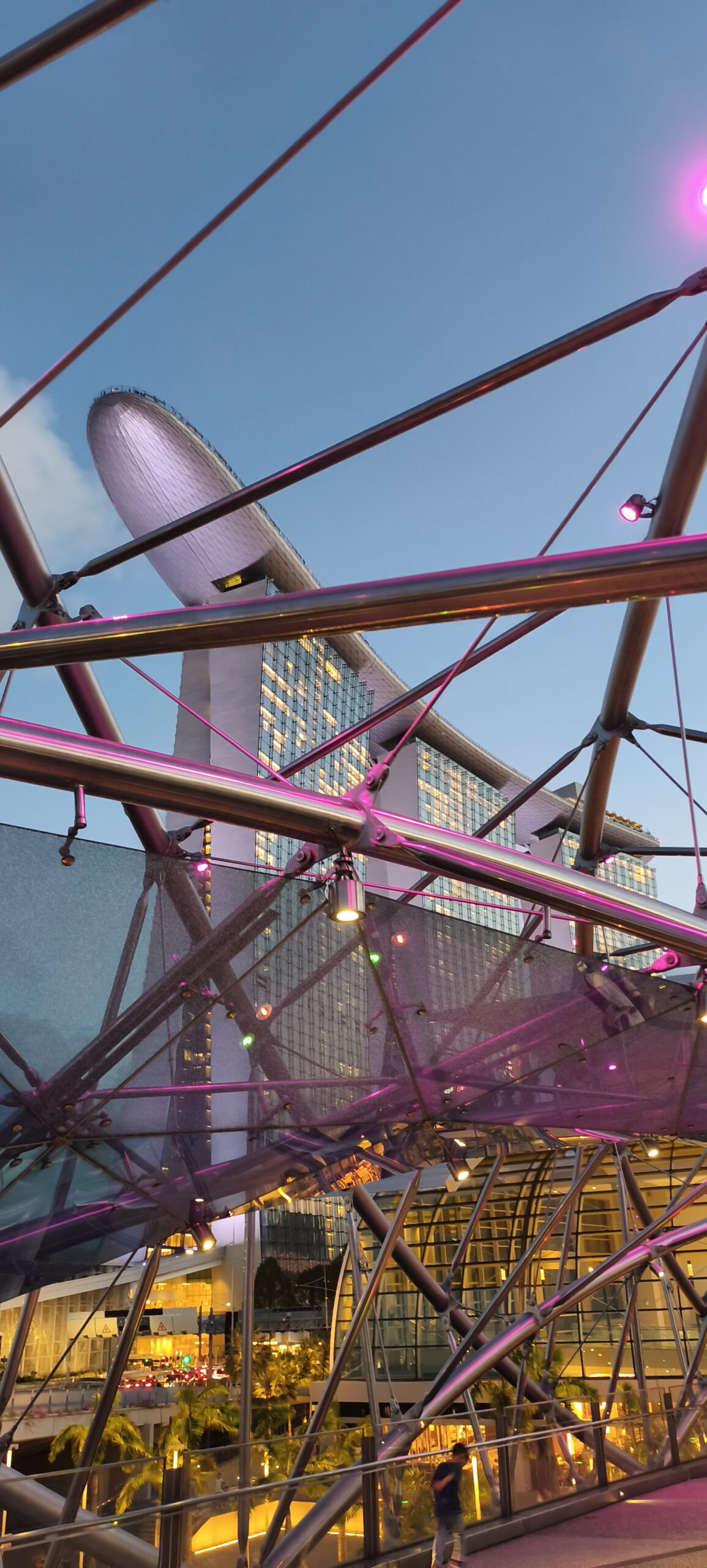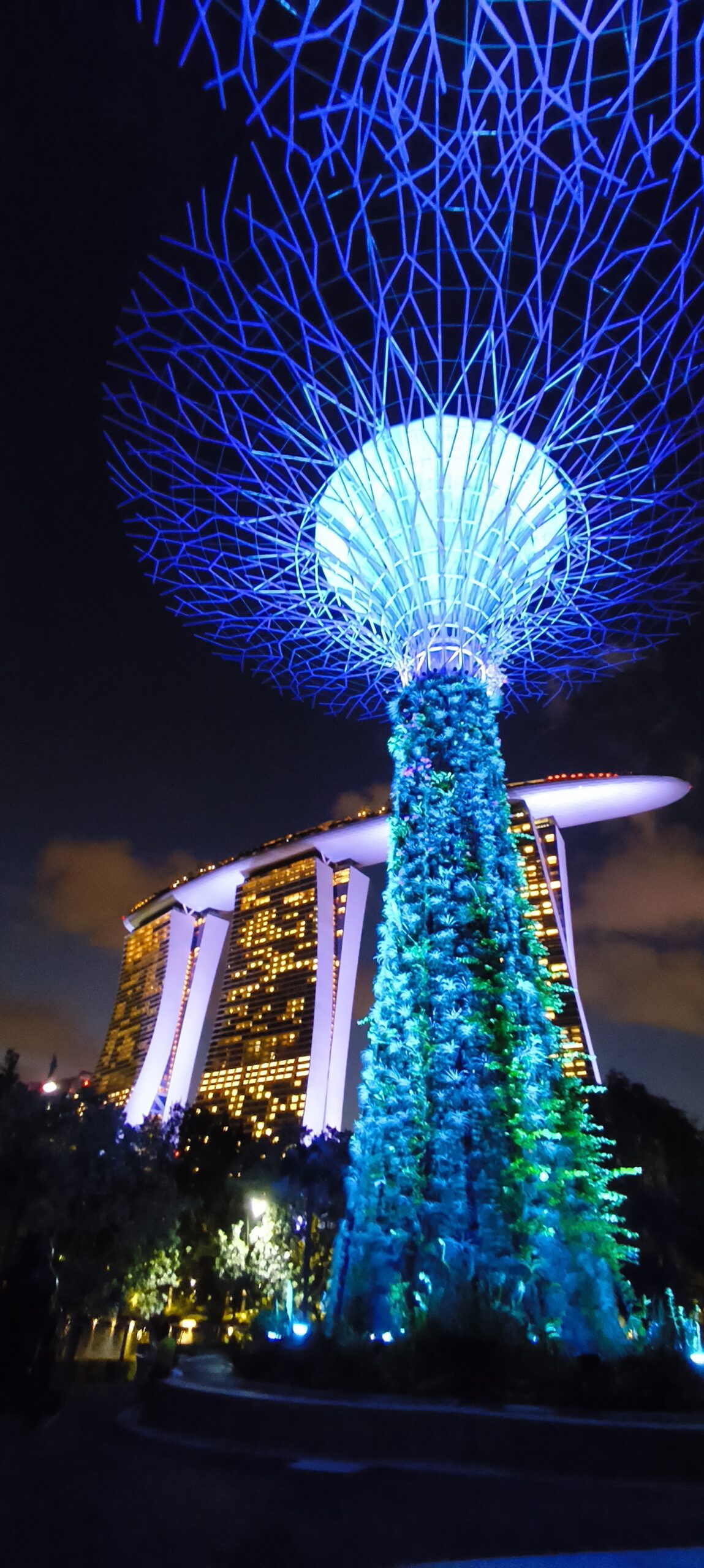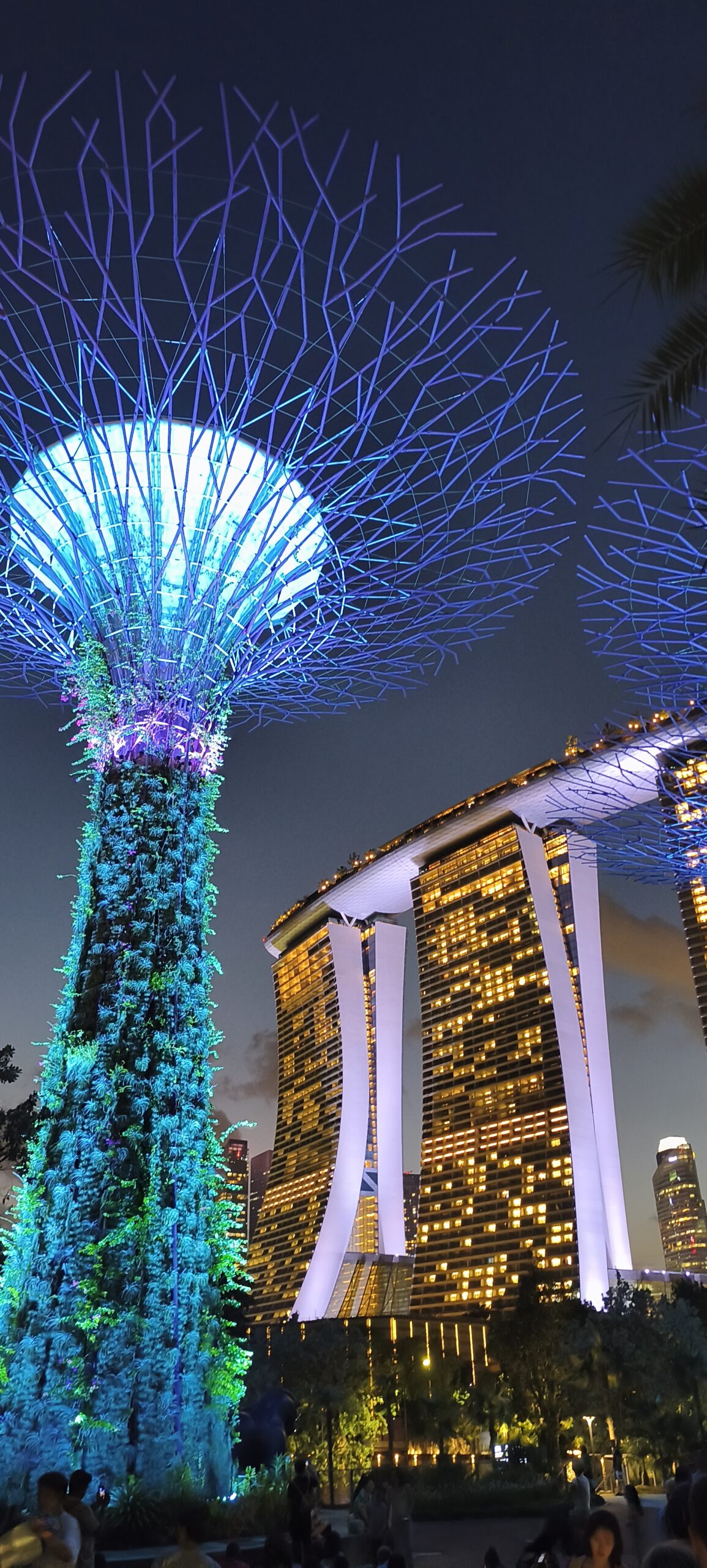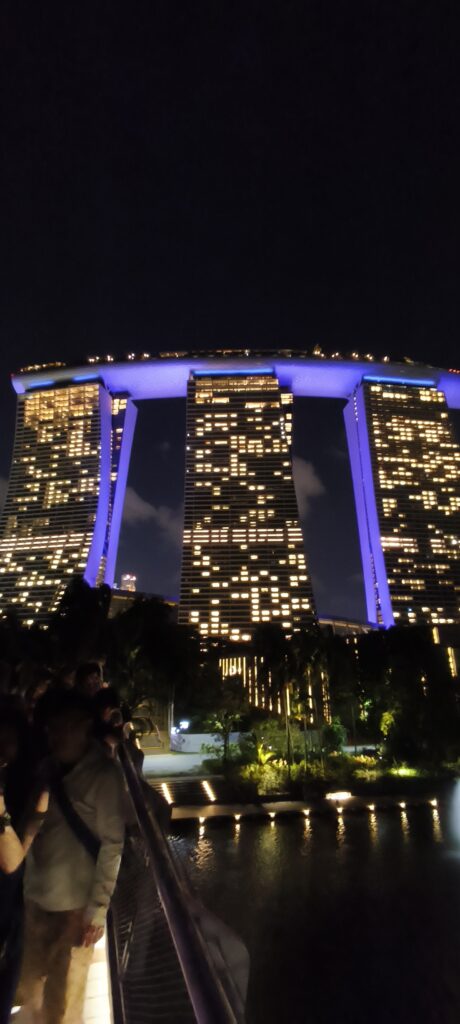 On ne peut éviter les deux emblèmes de la ville : l’immeuble Marina Bay Sands, trois tours chapotée d’un cigare/bateau, et juste à côté un grand parc Garden By The Bay avec la partie Supertree Grove. Des structures futuristes en forme d’arbres, reliés par une passerelle, avec un spectacle son et lumière en soirée.