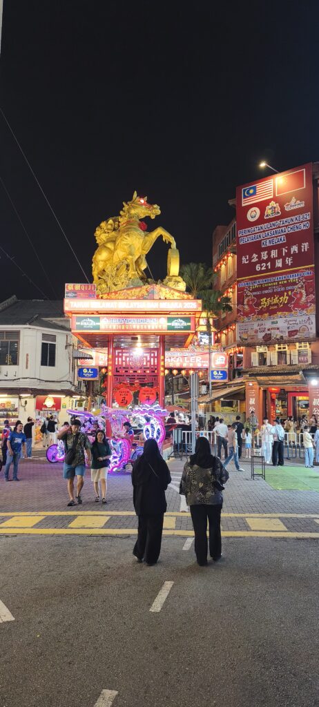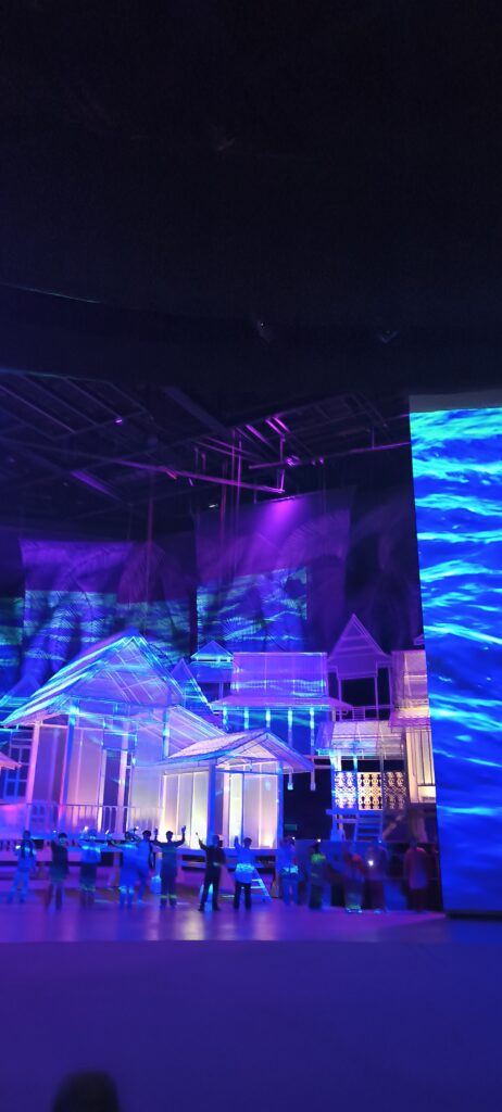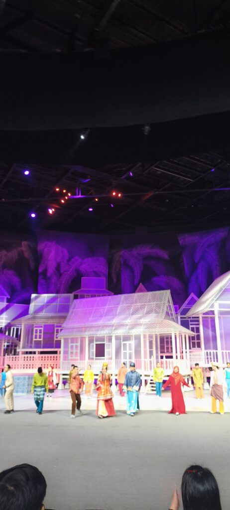 Je me décide pour un spectacle. La salle est futuriste réussi, au bord de la mer, dans une future zone touristique avec déjà un impressionnant immeuble en construction comme voisin. La salle est vendue pour tourner autour de différentes scènes. On va voir. Oui le bloc du public tourne sur lui même avec une partie de l’installation, on ne se rend compte de rien à part un petit bruit. Énorme écran, danseurs en arrière plan par transparence, danseurs dans l’eau sous des cascades, son moderne et parfait. Immersif, ça me plaît. L’histoire est autour bien-sûr de la ville de Malacca.