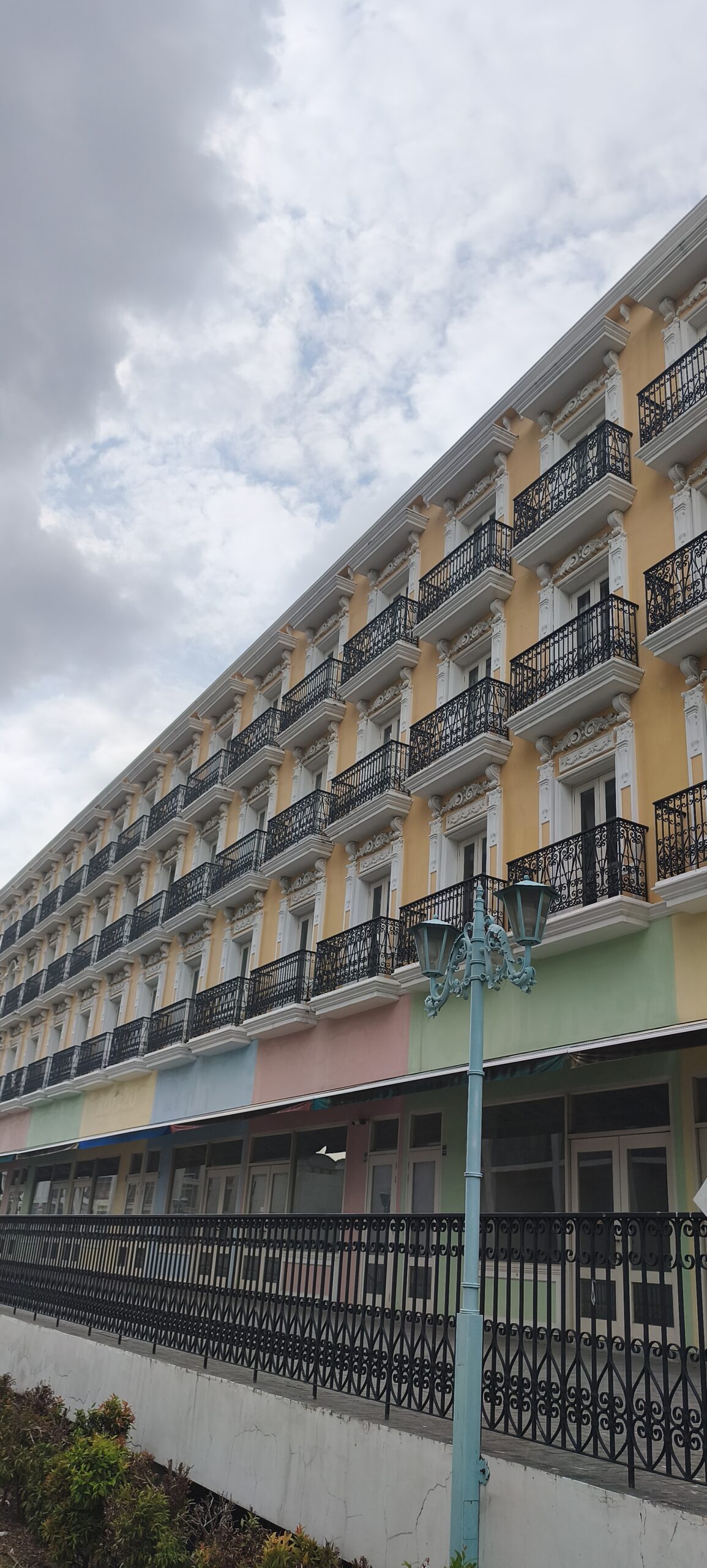 Je marche pour aller dans un quartier pris sur la mer ou une mangrove dans le but de visiter une mosquée sur pilotis les pieds dans la mer. La ville a l’air abandonnée et surtout pas finie : un grand immeuble pas fini, un hôtel façon oriental mal fait et pas fini en bord de mer. Un énorme bâtiment en longueur avec déco baroque à la française ou Italienne et vitrines pastel en rez de chaussée, très bien fini de l’extérieur mais sans vie. Étrange.