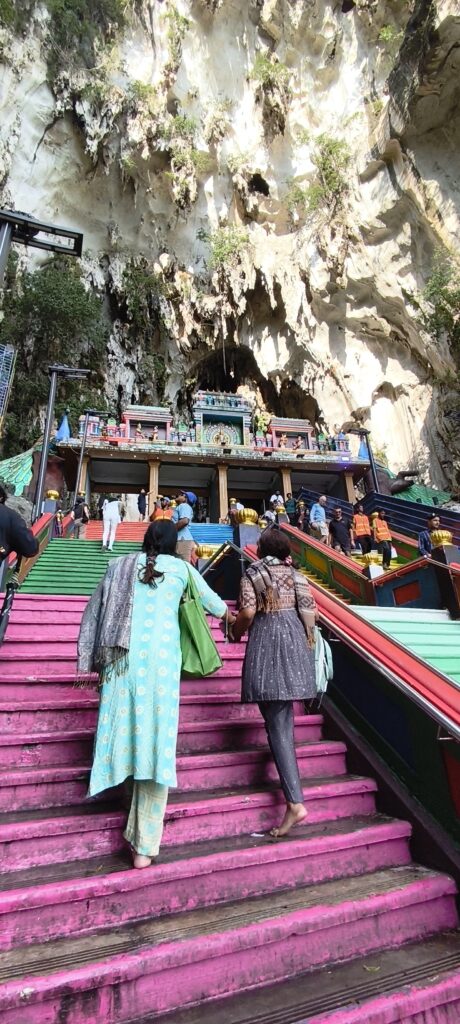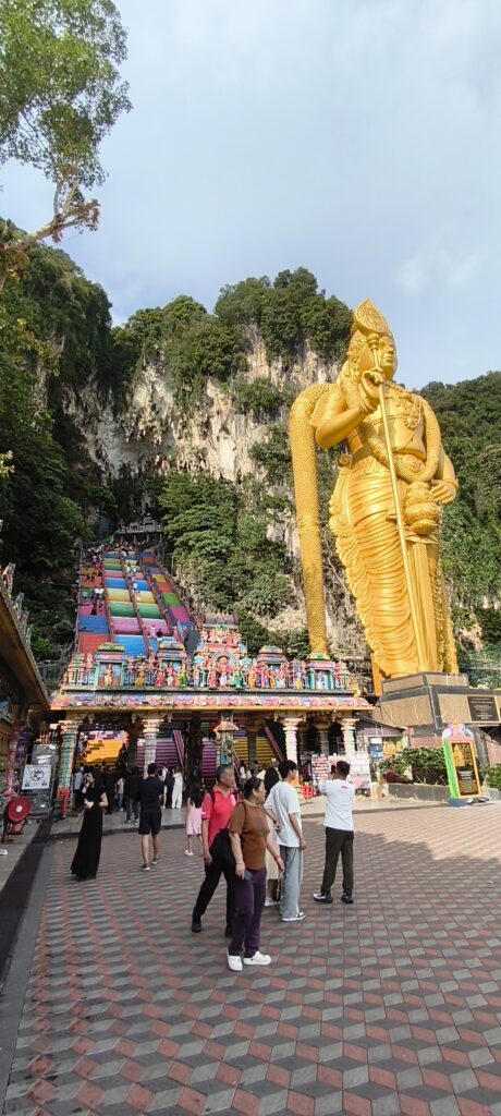 Batu Caves : une autre grotte en périphérie de la ville est cette fois attribuée au culte indien. Un peu un centre commercial. Sinon il y a un très grand escalier pour accéder à des énormes salles dans la roche. Des statues géantes. J’ai pu assister à un bout de cérémonie dans un des temples.