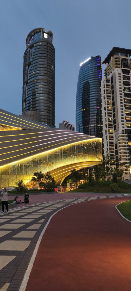Tour Merdeka 118, on la voie depuis partout. Une des plus hautes du monde, détrônée par Dubaï. Beau design. Les alentours ne sont pas encore exploités.
