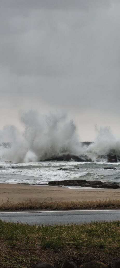 Je fais du porte à porte et pour le peu d’hôtels ouverts dans cette ville balnéaire, on me répond que c’est complet. Un dernier me transporte vers un anglophone, il accueille des bénévoles… francophones, on discute avec les jeunes pendant qu’un 3e contact doit me sauver la nuit. L’adresse qui l’on me fournit est fermée et il n’y a personne, j’attends encore 15min glacées. Tant pis je vais vers le grand hôtel pour négocier une chambre, tarif presque acceptable pour un samedi soir. Même problème pour le resto – pire vu l’heure finalement je m’arrête à vue, le café fait aussi du salé. Il me fait un plateau sur mesure. Comme d’habitude : il y a un couple de clients et je suis l’attraction, on s’amuse avec googletrad.