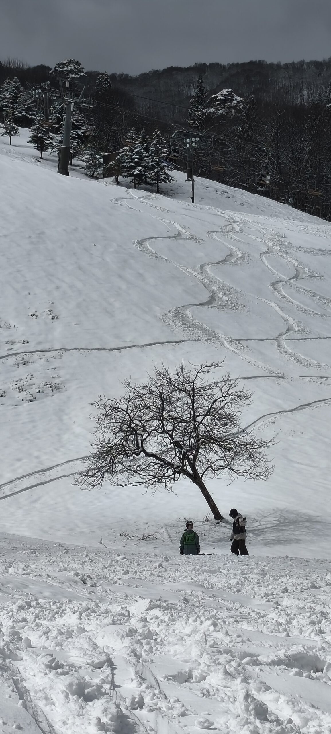 A matin , les montagnes alentours ont reçu une couche de blanc (on est au bord de la mer). 0bjectif : aller voir la neige, la vraie. Je m’étais satisfait des derniers tas de neige sur les parkings. Il y a des stations pas très loin. Tout est blanc, après 4 mois de pays chauds, objectif atteint. Mini station, peu de monde, peu de neige en bas mais ça fonctionne. Restaurant au pied des pistes, avec la mamie serveuse très pittoresque.