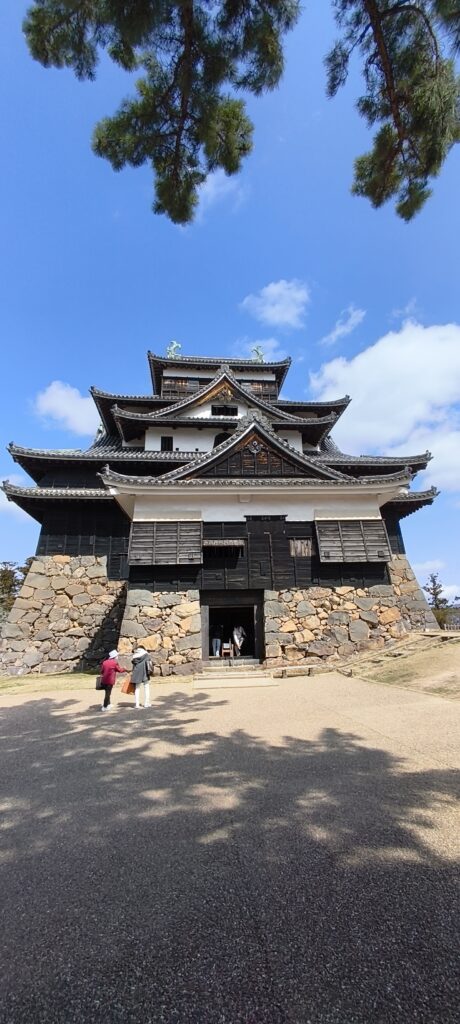 A ne pas rater à Gotsu : son château. Bien sûr en hauteur, avec des grandes murailles qui tiennent la colline. Le bâtiment principal a bien l’allure médiévale que l’on peut voir dans les films ou bandes dessinées. On quitte ses chaussures à l’entrée et on les porte sans un sac. Tout est en bois, tout est resté simple et c’est superbe. On passe par tous les étages.