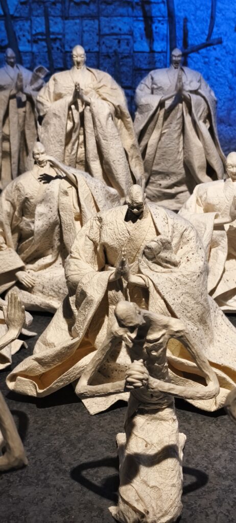 Je vais aussi au musée du riz, un énorme bâtiment ancien tout en longueur qui domine la ville, certainement une ancienne école. Je rentre où il y a du monde pour acheter un billet d’entrée – gros quiproquo – c’est en fait une attraction humoristique qui consiste à cirer à quatre pattes le très long couloir au parquet de bois, chronométré, avec diplôme et photos. Je n’ai pas compris de suite, eux non plus que je voulais pas et seulement voir le musée. Mais Musée nul. Musée de la préfecture vite visité, mais c’est la saison des expos de poupées que les petites filles se devaient de collectionner, on en trouve de toutes ampleurs, toujours de belles réalisations.