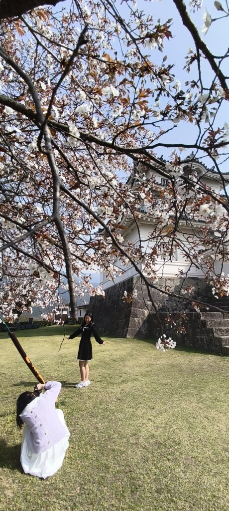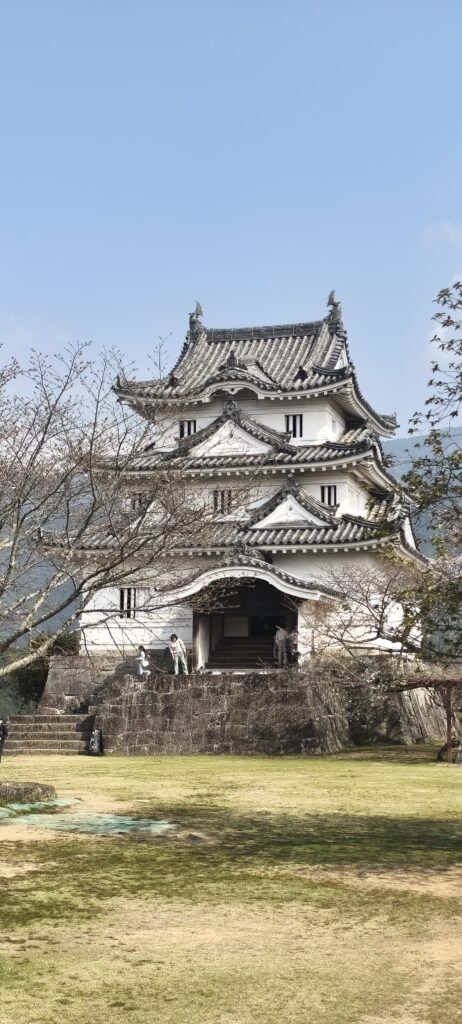 Expédition sur la côte au sud vers Uwajima. Un petit château entouré d’une première petite forêt de cerisiers en fleurs. Dans la ville, voir le jardin classé d’un ancien dignitaires. Noter un pont sur l’étang qui ne sert que de support à une treille qui va fleurir.