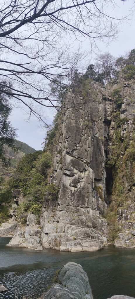 Arrêt aux gorges de Tomisato. En aval d’un barrage, la rivière de montagnes est encore dans un bel écrin de roches et de forêts. Occasion de faire une petit peu de marche.